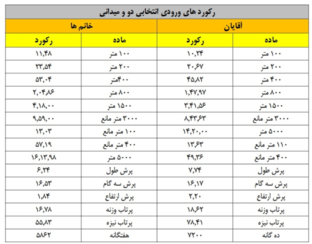 * مسابقات طبق قوانین و مقررات فدراسیون دو و میدانی جمهوری اسلامی ایران برگزار خواهد شد.