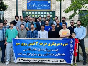 هیئت ورزش های دانشگاهی استان همدان با همکاری هیئت تنیس روی میز یک دوره مربیگری درجه ۳ تنیس روی میز ویژه دانشجویان دانشگاه های استان همدان با حضور ۴۴ شرکت کننده به مدت ۳ روز در دانشگاه بوعلی سینا برگزار نمود.
