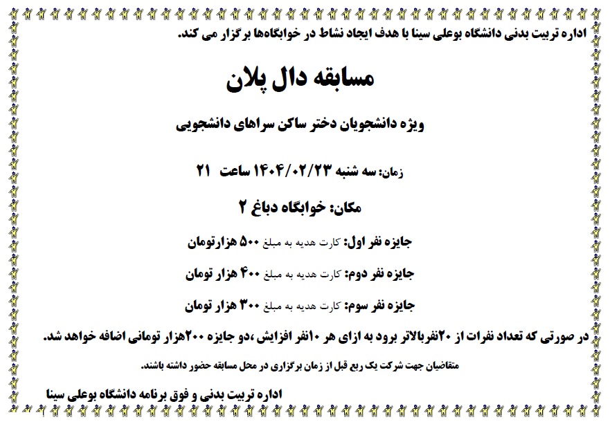 صفحه اصلی جزئیات خبر فراخوان انتخابات و تشکیل انجمن ورزشی دانشجویی دانشگاه بوعلی سینا 23 11 2025 13:03 کد خبر : 23771537 تعداد بازدید : 141 به اطلاع دانشجویان می رساند اداره تربیت بدنی و فوق برنامه...