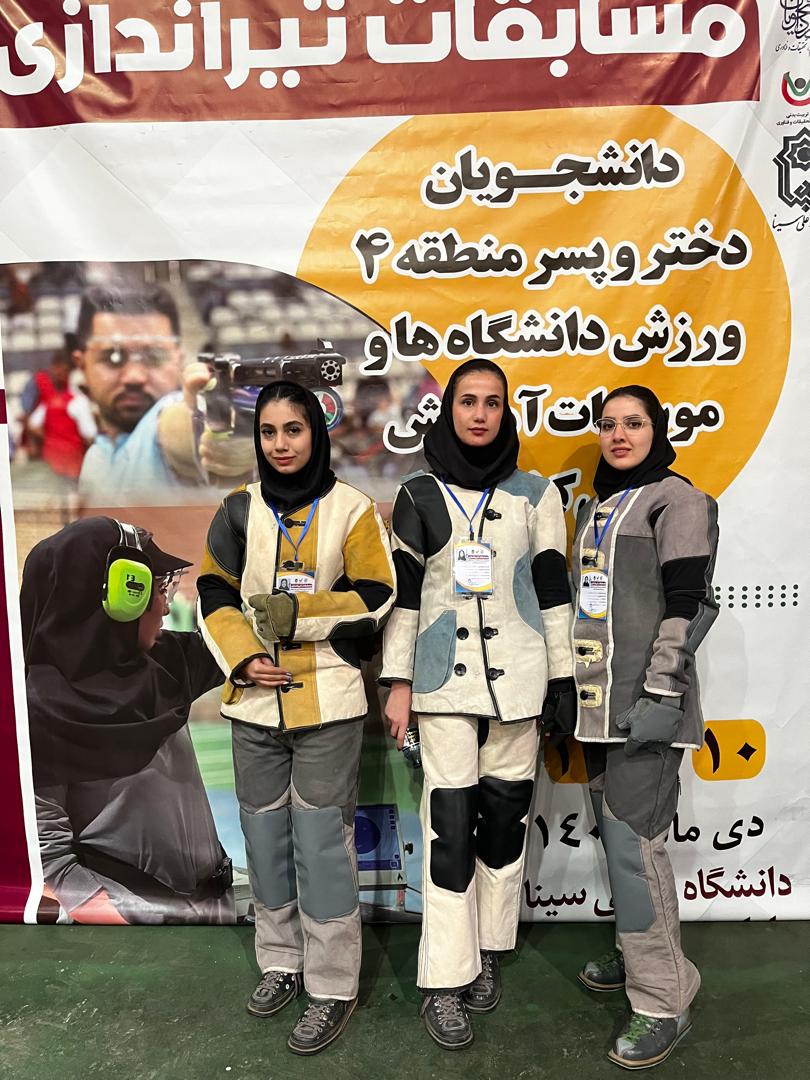 همزمان با هندبال، دانشگاه بوعلی­ سینا میزبان مسابقات تیراندازی دانشجویان دختر و پسر منطقه 4 ورزش نیز بود. این مسابقات در سالن تیراندازی هیات استان و با حضور دانشجویانی از دانشگاه­ های قم، محلات، صنعتی همدان، حضرت معصوم (س)، رجاء و دانشگاه بوعلی سینا در دو ماده تفنگ و تپانچه انفرادی و تیمی برگزار گردید. در ماده تپانچه دانشجویان پسر علی حقی از بوعلی­ سینا اول شد، ایلیا زکی زاده از رجا و محمد جواد قاسمی از قم مقام­ های بعدی را به دست آوردند. در ماده تپانچه دانشجویان دختر سما جعفری، پرنیان شیخی و فاطمه مجیدی هر سه از بوعلی­ سینا بر سکوهای اول تا سوم قهرمانی قرار گرفتند. در تفنگ دانشجویان پسر ادیب ضیاء مرادی از صنعتی همدان اول شد. محمدصالح علیجانی از رجاء در جایگاه دوم ایستاد و محمدرضا شیرخانی جایگاه سوم را از آن خود کرد. در ماده تفنگ دانشجویان دختر نیلوفر حمیدی از بوعلی ­سینا به مدال طلا دست یافت، یاسمن منصوری از دانشگاه حضرت معصومه (س) نایب قهرمان شد و کیانا صحرایی از بوعلی­ سینا سوم شد. بدین ترتیب با احتساب امتیازات ورزشکاران هر دانشگاه، در ماده تپانچه تیمی دانشجویان پسر، بوعلی ­سینا قهرمان شد و دانشگاه­ های محلات و قم به ترتیب حائز رتبه ­های دوم و سوم شدند. در ماده تپانچه تیمی دانشجویان دختر، بوعلی ­سینا با ترکیب کامل مقام قهرمانی را به دست آورد. مقام قهرمانی تفنگ تیمی دانشجویان پسر به محلات رسید و در بخش دانشجویان دختر بوعلی­ سینا بر سکوی نخست ایستاد و دانشگاه محلات دوم شد.