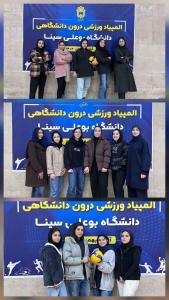 به گزارش روابط عمومی اداره تربیت بدنی و فوق برنامه، مسابقات درون دانشگاهی دانشگاه بوعلی سینا در بخش دختران در 10 رشته ورزشی فوتسال، دوومیدانی، شنا، بدمینتون، بسکتبال، تنیس روی میز، والیبال، تکواندو، تیراندازی و شطرنج، با مشارکت دانشکده های مختلف برگزار شد. تعداد مدال هایی که توسط هر دانشکده کسب شده است را می توانید در جدول زیر مشاهده نمایید.